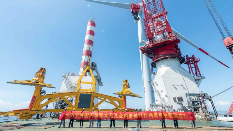 近日,汕頭某海域,巨力索具研發(fā)的國內(nèi)首臺(tái)50噸大兆瓦全角度旋轉(zhuǎn)式海上單葉片吊具,剛剛面世,便展開連續(xù)作業(yè),順利完成5臺(tái)風(fēng)機(jī)的葉片吊裝,經(jīng)受住了考驗(yàn),完美的展示了巨力吊具的高可靠性、高安全性及高效率。