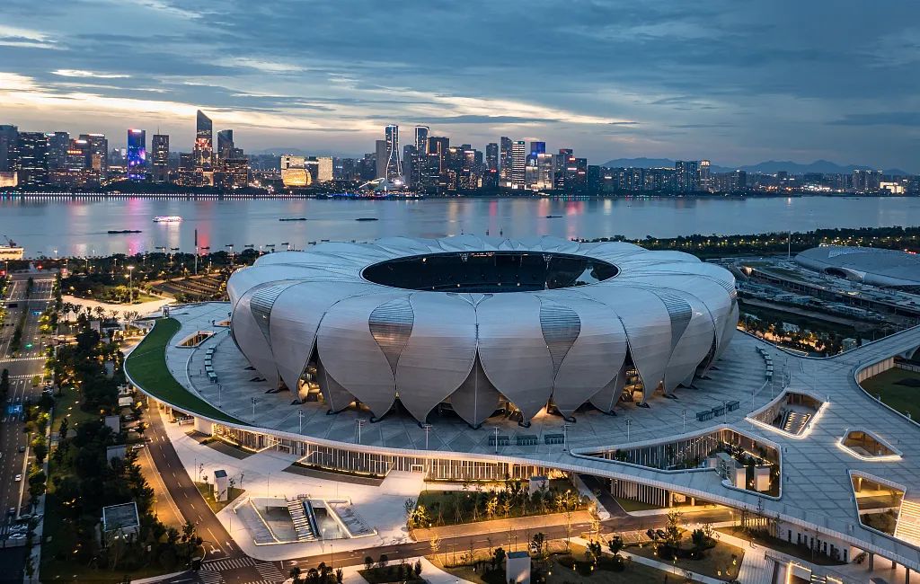 比賽場館是舉辦一場精彩賽事的前提,巨力索具參與建設的杭州奧體中心體育場(以下,簡稱“杭州奧體中心)是杭州亞運會開幕場館及重要比賽場館之一。主體的運動場館外形似蓮花,造型動感飄逸,由28片大花瓣和27片小花瓣組成。項目采用巨力索具高強度鋼拉桿和高釩索,增強花瓣面外穩定。該造型取意于杭州絲綢紋理與紡織體系,建筑體態源于錢塘江水的動態,擁有簡潔的花瓣單元,猶如一朵美麗的蓮花綻放于錢塘江畔。