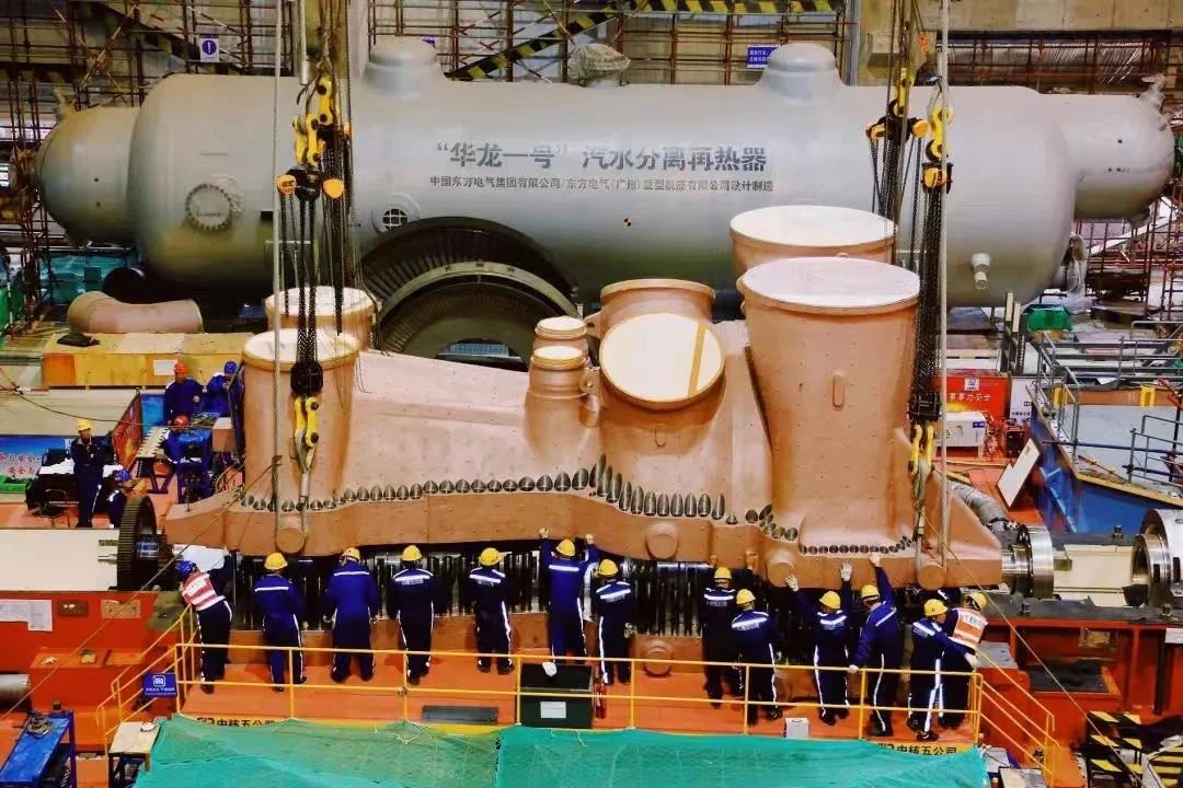 2017年11月28日,首臺蒸汽發生器吊裝就位。