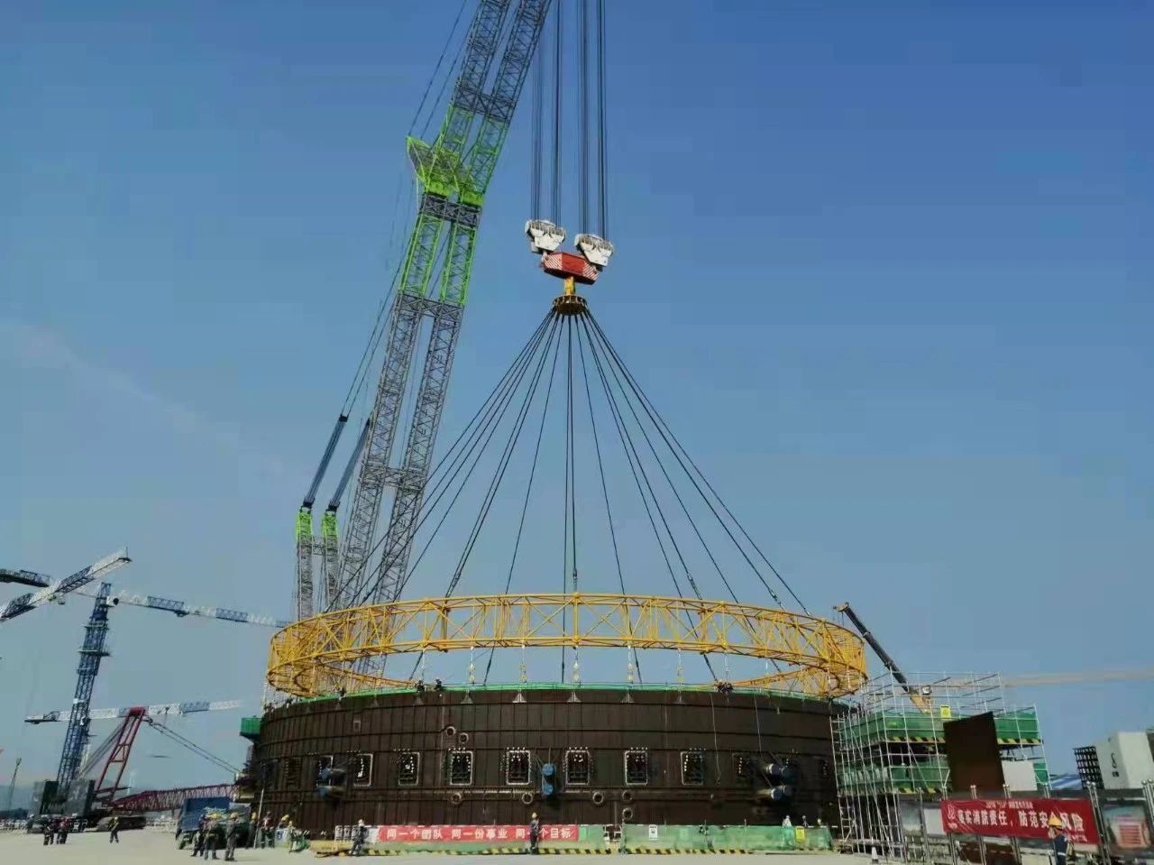 2021年10月,漳州核電1號機組反應堆壓力容器吊裝成功,吊裝過程翻轉、吊裝、就位難度極大,巨力索具項目團隊聯合各部門共同確定最終吊裝方案,順利完成吊裝,吊裝過程中所用的吊具均由巨力索具提供。
