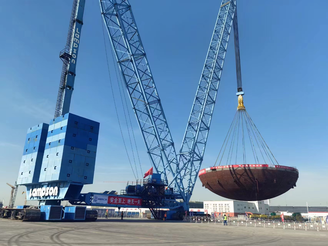 2024年1月,徐大堡核電1號機組CV底封頭開始吊裝,CV底封頭整體呈半橢球形殼體結構,具有重量大、體積大、就位精度高等特點。巨力索具所提供的轉接頭、分配器、吊索組成成套吊具解決受力問題,并全程配合吊裝過程,確保吊裝過程穩步進行。