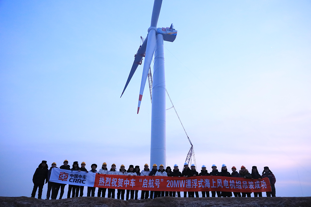 “啟航號”是中國中車自主研發的20MW漂浮式海上風電機組,功率突破到20MW量級,風輪直徑達到260米,相當于7個標準足球場,葉尖速度與高鐵速度“同行”,輪轂高度達到151米,在設計風速下年滿發小時數約為3500小時,設計使用壽命25年。機組每轉動一圈能滿足一個家庭2至4天的用電需求,年節約燃煤消耗約2.5萬噸,減少二氧化碳排放約6.2萬噸。
