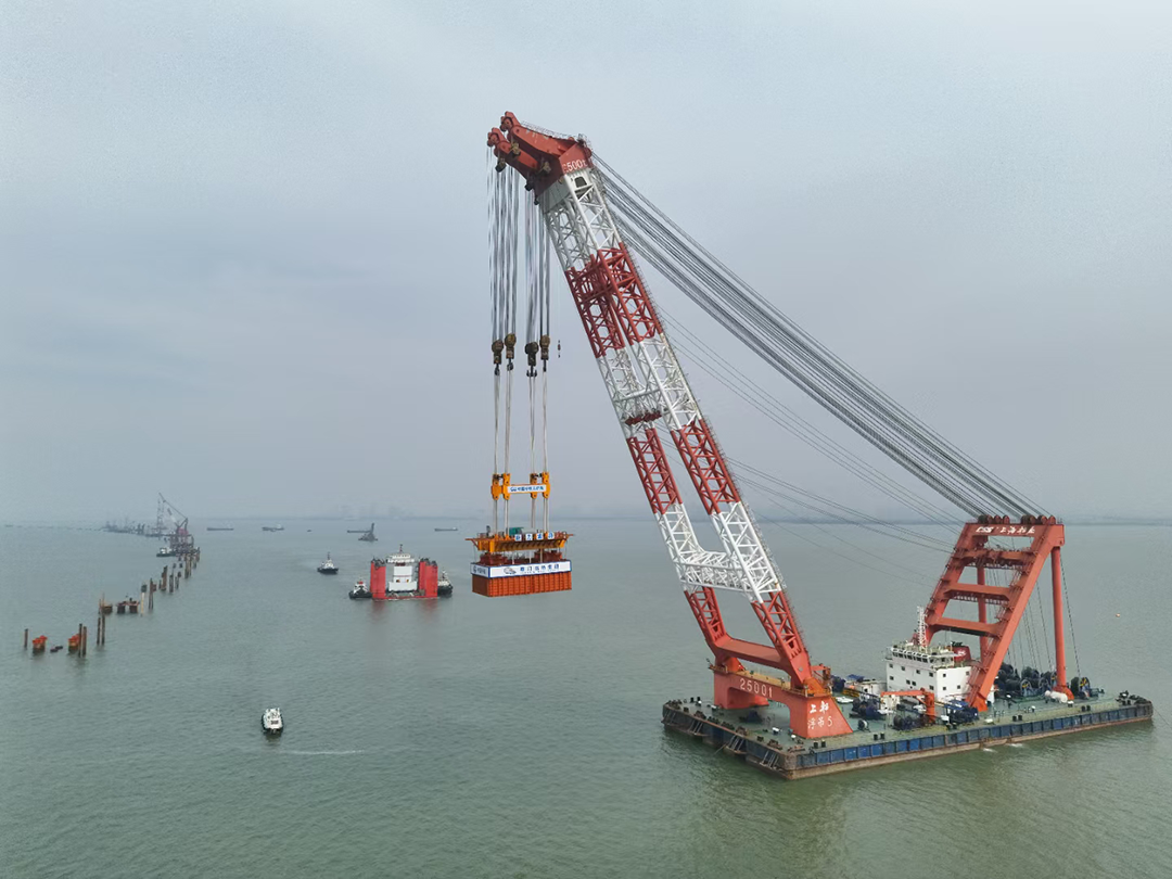 在項(xiàng)目建設(shè)及吊裝過(guò)程中,巨力索具工程項(xiàng)目團(tuán)隊(duì)與總包單位齊心協(xié)力,共同打造生態(tài)施工標(biāo)桿,采用“搭積木”式預(yù)制工藝,大幅減少海上作業(yè)時(shí)間達(dá)80%,在施工期間實(shí)現(xiàn)了對(duì)中華白海豚棲息地的零干擾。同時(shí),項(xiàng)目部聯(lián)合海事部門(mén)構(gòu)建起“海陸空”立體防護(hù)網(wǎng),嚴(yán)格落實(shí)環(huán)保要求,實(shí)現(xiàn)廢水處理“零排放”,為海洋生態(tài)環(huán)境保護(hù)貢獻(xiàn)力量。