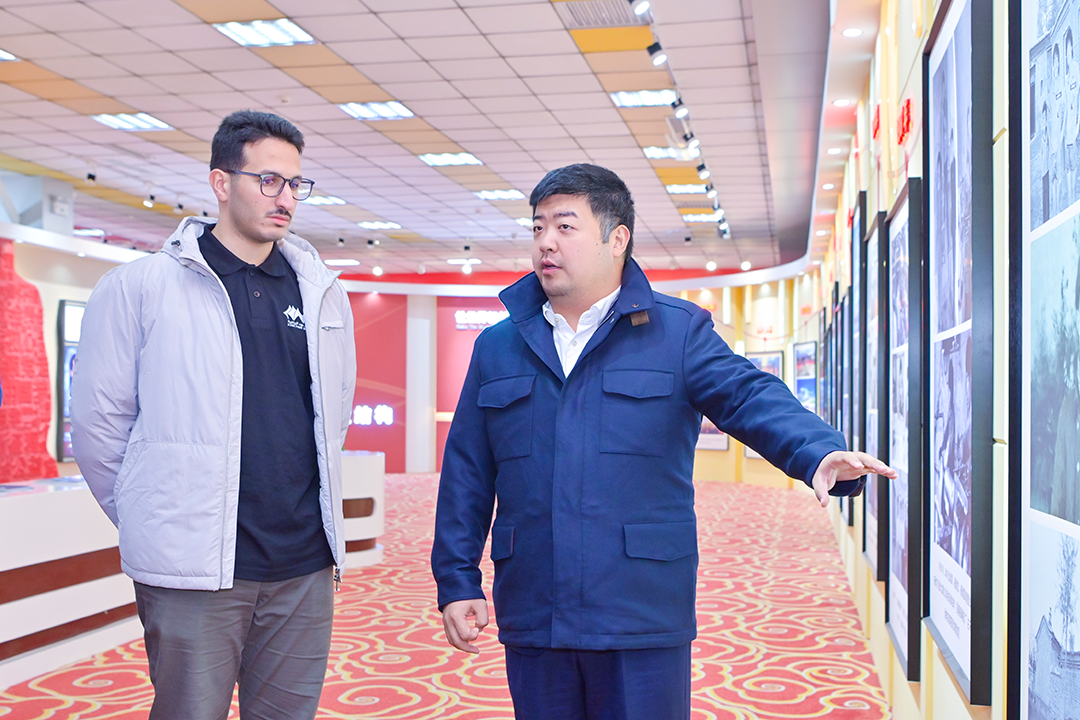 在總裁楊超、常務副總裁張亞男等領導的陪同下,沙特代表團首先參觀了公司展廳,通過詳實的圖文資料、精美的產品模型與沉浸式的多媒體展示,代表團全面了解了巨力索具從創業到立業、從創新到引領的發展歷程。從參與的一項項國家級重大工程,到獲得的一系列權威認證與專利技術,再到覆蓋海工、航空、能源、工程建設等全球領域的多元化產品矩陣,展廳全方位、立體化地展現了巨力索具雄厚的企業實力、深厚的技術積淀與卓越的品牌形象,給代表團留下了深刻而良好的第一印象。