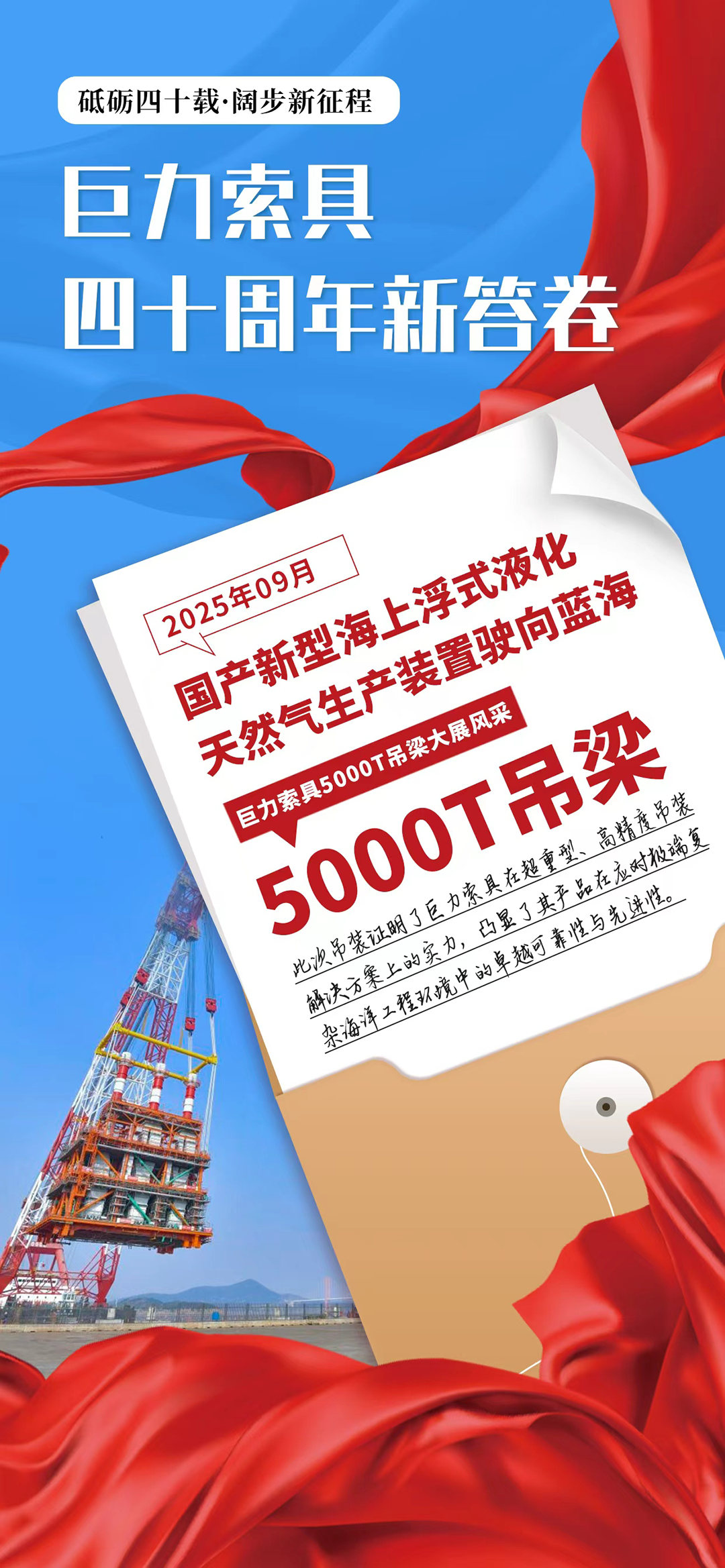 回眸歷史,非凡成就與貢獻有目共睹,精神力量薪火相傳;展望未來,新時代浩蕩東風催人奮進,穩定發展重任在肩。巨力索具將始終堅持改革創新,跟隨集團黨委步伐,不斷增強開拓創新和主動求變的能力,堅定信念凝聚力量,牢牢掌握發展主動權,以更加奮發有為的昂揚姿態在高質量發展之路上勇毅前進。