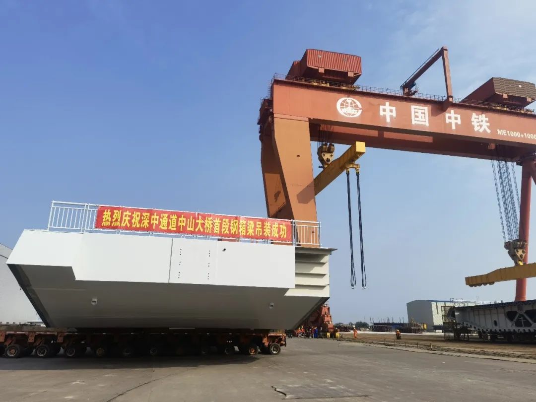 11月19、20日,長133米,寬20米,高4.7米,重1700噸的大型鋼箱梁段運至指定位置,巨力索具研發制造的鋼箱梁吊具全程保障該項目吊裝順利實施,標志著深中通道G05標段泄洪區鋼箱梁大節段XG9L出海平臺在中鐵山橋南方裝備試運行成功。此次成功試運行為深中通道鋼箱梁大節段順利啟運奠定了堅實基礎。