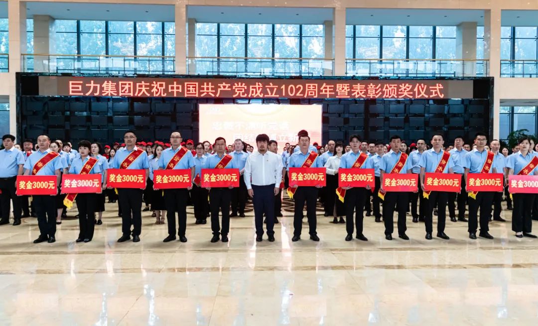 6月28日,巨力集團慶祝中國共產黨成立102周年暨表彰頒獎儀式在集團召開。集團高管、各產業總裁出席活動,巨力集團黨委副書記、總裁,劉伶醉公司董事長楊將帶領全體黨員宣誓、重溫入黨誓詞。巨力索具黨總支書記、總裁楊超為區工匠榮譽獲得者頒獎。