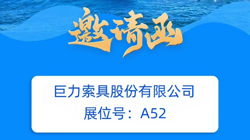 2025年9月5-7日,“2025煙臺深遠海養殖及現代漁業裝備博覽會”在煙臺八角灣國際會展中心舉辦。作為索具行業的領軍企業,巨力索具將亮相本屆展會,誠邀業界同仁、合作伙伴與廣大客戶蒞臨展位,共同探討深遠海養殖與海洋裝備的前沿技術與發展趨勢,攜手邁向海洋經濟新藍海。
